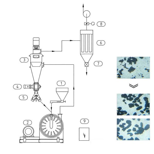 This equipment is specially designed for the subsequent surface shaping of artificial graphite and natural graphite, and is suitable for the post-processing of ACM type mechanical crushing and shaping machines (internal classification mills).